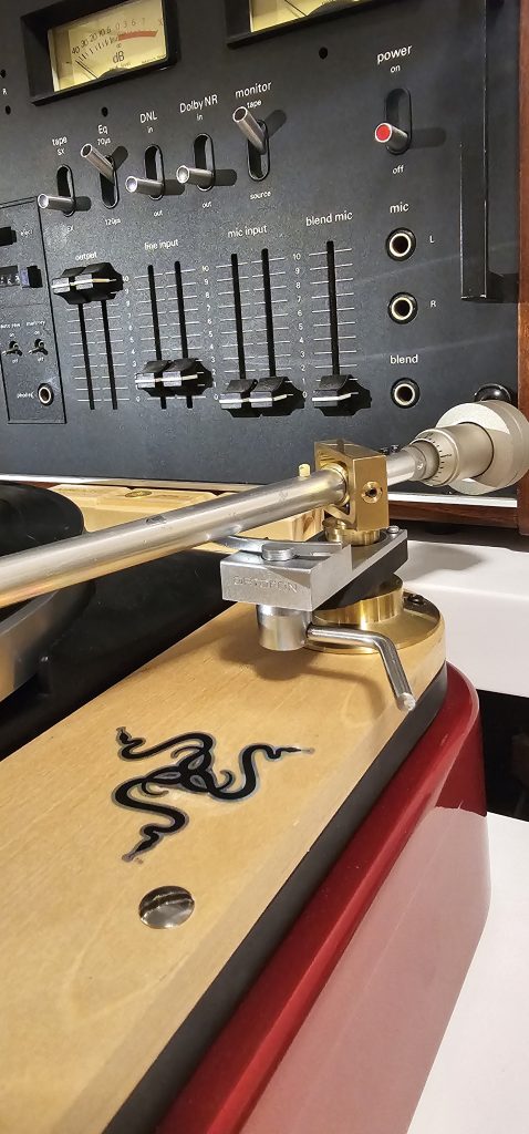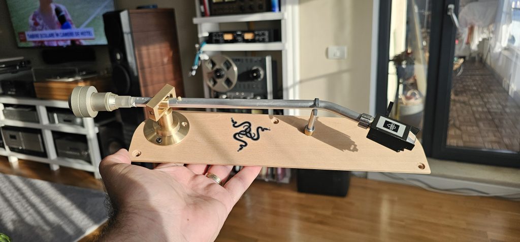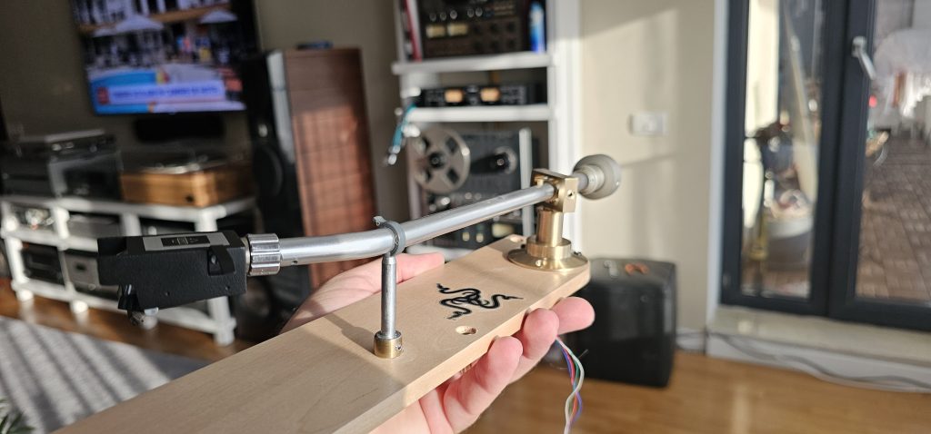 That pipe was abused and actually i had it mostly to copy the geometry of the tonearm and reuse it in a titanium arm. However, since the pipe was relatively ok, i decided to have a pivot built for it, maybe use it someday in my EMT 930. The tonearm would be some sort of Frankenstein, with the pipe being from an EMT 929, counterweight from a DENON arm, lift from an Ortofon arm and brand new brass pivot. The pivot draws a lot of inspiration from Ortofon AS212 and its siblings, it has (almost) the same bearings but i reused the oblique bearing as the original EMT 929 (or it’s older poorer sibling Thorens BTD-12S) albeit not eccentric. I could have used the original EMT bearings but the pipe was too damaged (someone drilled too many holes).